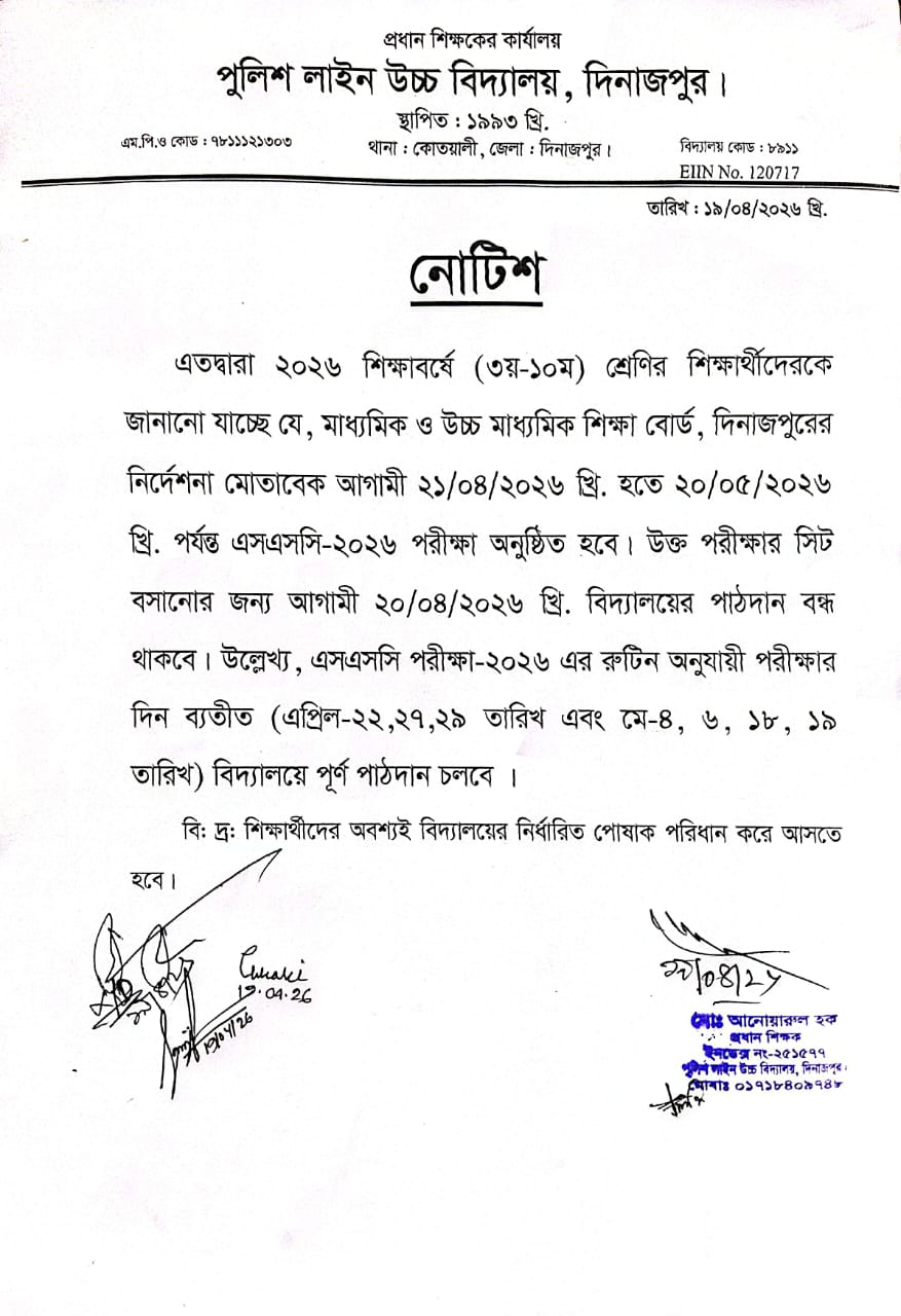 পুলিশ লাইন উচ্চ বিদ্যালয় দিনাজপুর এর অফিশিয়াল ওয়েব সাইটে আপনাকে স্বাগতম.......