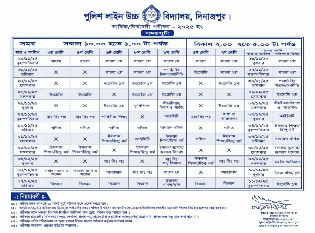 বাষিক/নিবাচনী পরীক্ষার সময়সূচী-২০২৫